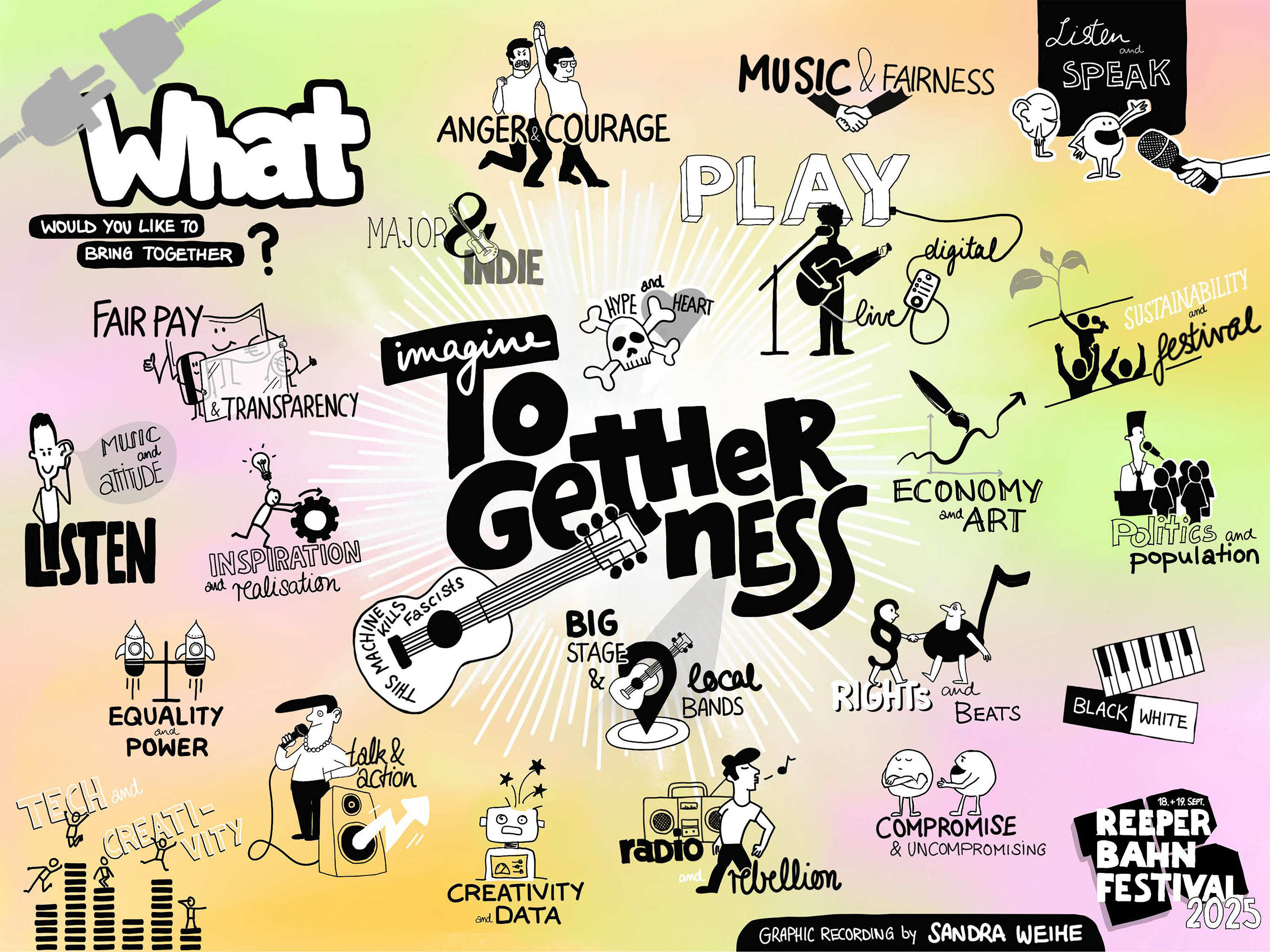 Graphic Recording Tag 2 auf dem Reeperbahn Festival als Besucherumfrage zu der Frage: